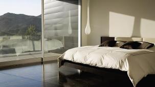 This apartment with nice shades of blue and a beautiful bathroom will help you to relax after work.